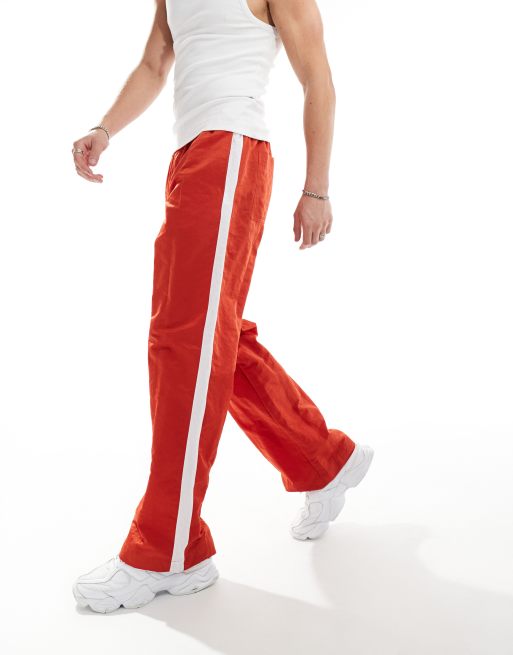 ASOS DESIGN – Czerwone szerokie spodnie z nylonu z białymi lampasami