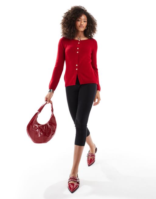 ASOS DESIGN – Czerwony dzianinowy kardigan z dekoltem w łódkę