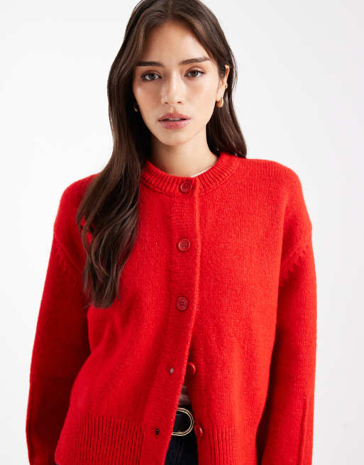 ASOS DESIGN – Czerwony kardigan o pudełkowym kroju z okrągłym dekoltem i rozcięciem z boku