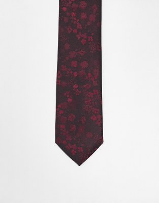 ASOS DESIGN – Czerwony krawat w kwiatowy wzór w stylu grunge
