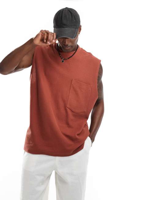 ASOS DESIGN – Czerwony podkoszulek oversize z kieszenią z przodu
