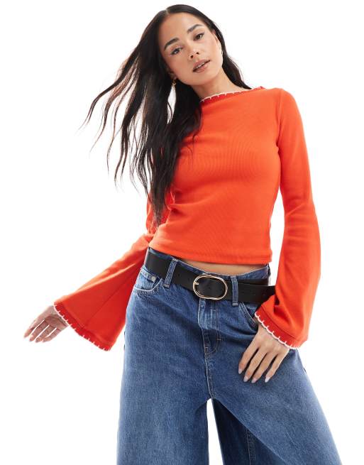 ASOS DESIGN – Czerwony top z szerokimi rękawami i falowanym zdobieniem