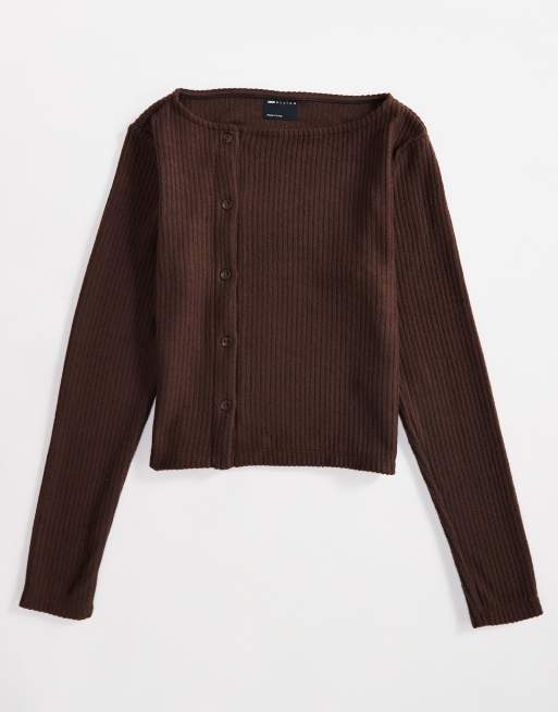 ASOS DESIGN – Czesany asymetryczny kardigan w brązowym kolorze