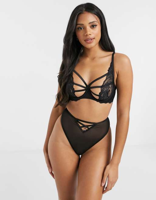 ASOS DESIGN – Darlene – Czarne stringi z siateczki z podwyższonym stanem
