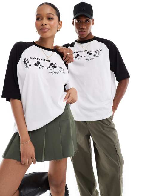 ASOS DESIGN – Disney – Biało-czarny T-shirt oversize z reglanowymi rękawami i nadrukiem Myszki Miki i przyjaciół