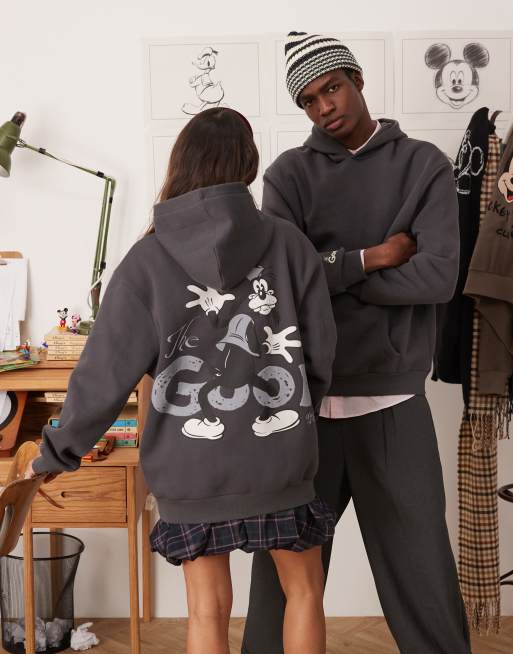 ASOS DESIGN Disney – Grafitowa bluza z kapturem unisex oversize z nadrukiem Goofy'ego