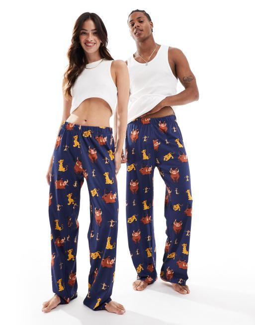 ASOS DESIGN – Disney – Granatowe spodnie dresowe z postaciami z filmu „Król Lew”