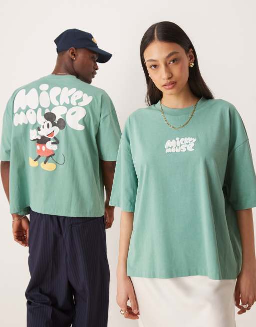 ASOS DESIGN – Disney – Zielony T-shirt unisex o pudełkowym kroju oversize z nadrukiem Myszki Miki