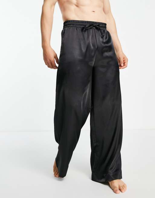 ASOS DESIGN – Domowe spodnie od piżamy z szerokimi nogawkami z czarnej satyny