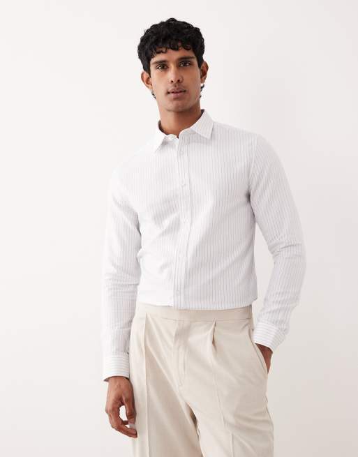 ASOS DESIGN – Dopasowana biała koszula w fakturowane paski
