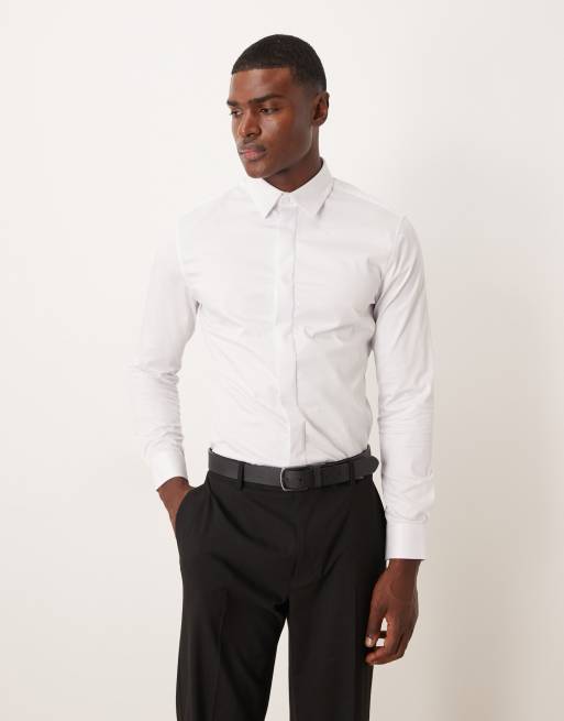 ASOS DESIGN – Dopasowana biała koszula z satyny easy iron