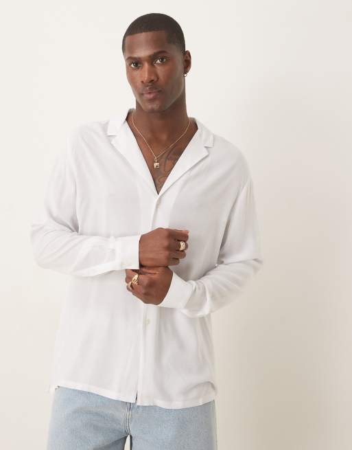 ASOS DESIGN – Dopasowana biała koszula z wiskozy z głębokim kołnierzykiem kubańskim