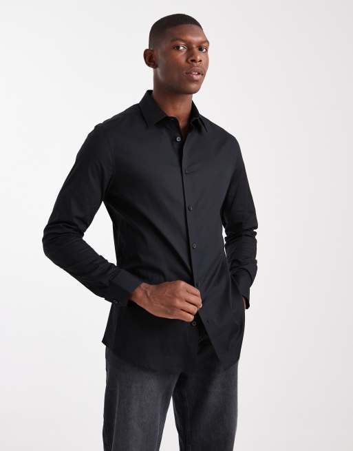ASOS DESIGN – Dopasowana czarna koszula ze stretchem