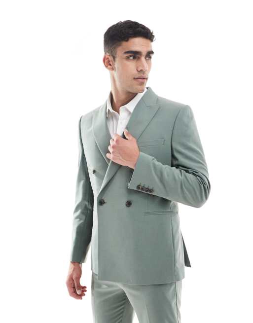 ASOS DESIGN – Dopasowana dwurzędowa marynarka garniturowa w zielonym kolorze