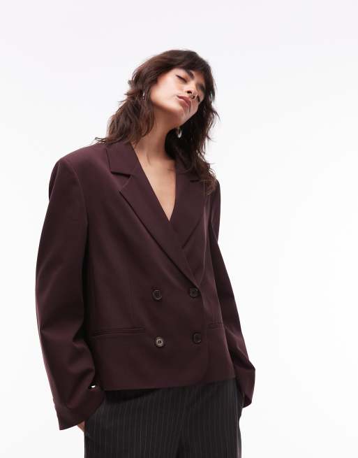 ASOS DESIGN – Dopasowana dwurzędowa marynarka o pudełkowym kroju w śliwkowym kolorze