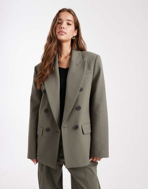 ASOS DESIGN – Dopasowana dwurzędowa marynarka w kolorze oliwkowym, część zestawu