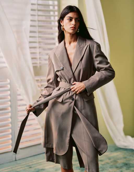 ASOS DESIGN – Dopasowana kawowa marynarka o wydłużonym fasonie z klapą sztormową, część zestawu
