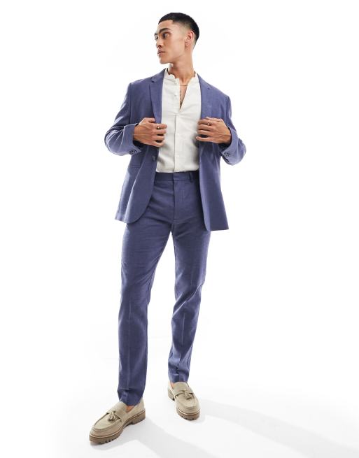 ASOS DESIGN – Dopasowana lniana marynarka garniturowa w granatowym kolorze we wzór w jodełkę