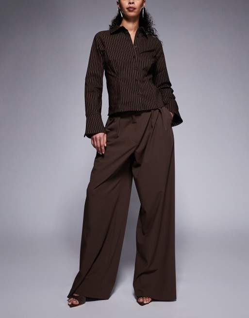 ASOS DESIGN – Dopasowane czekoladowe spodnie z szerokimi nogawkami i zakładkami, część zestawu