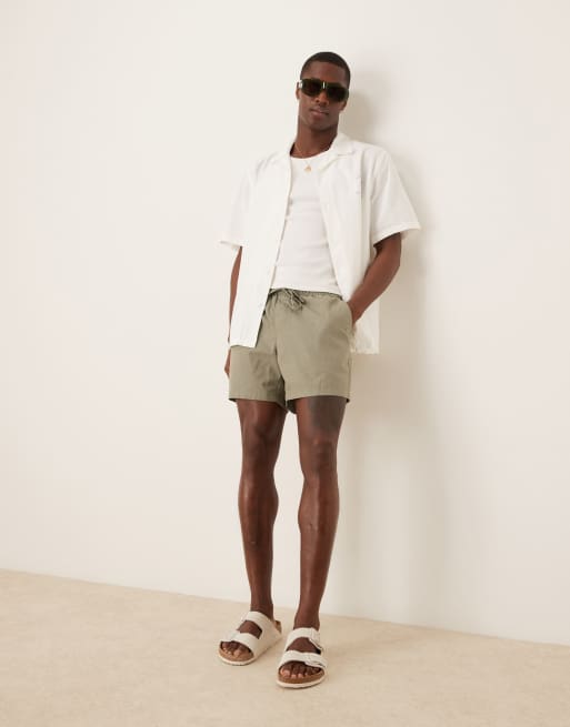 ASOS DESIGN – Dopasowane krótkie szorty bermudy z mieszanki lnianej w kolorze khaki