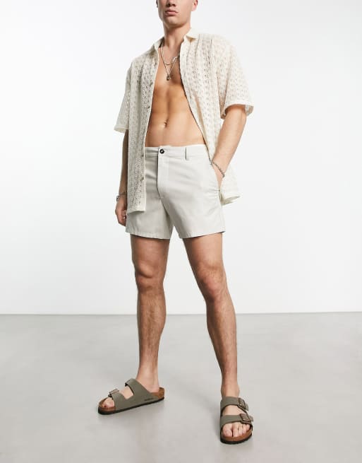 ASOS DESIGN – Dopasowane krótkie szorty chinosy w beżowym kolorze