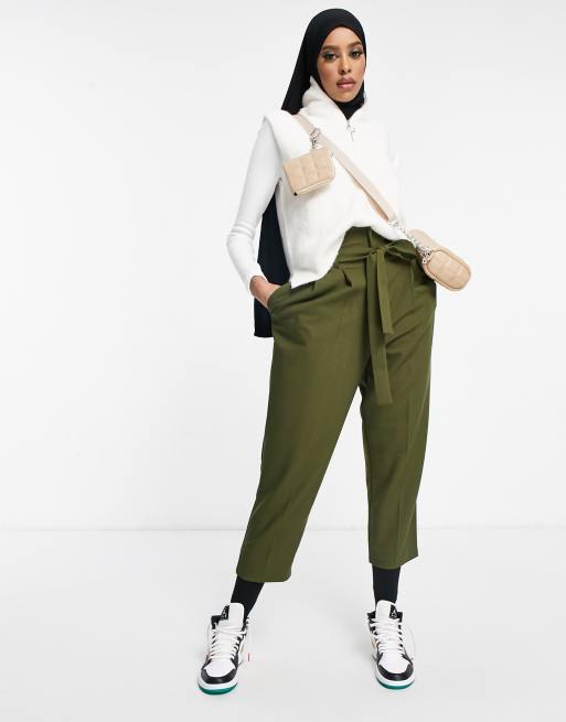 ASOS DESIGN – Dopasowane spodnie z wiązaniem w talii o długości przed kostkę