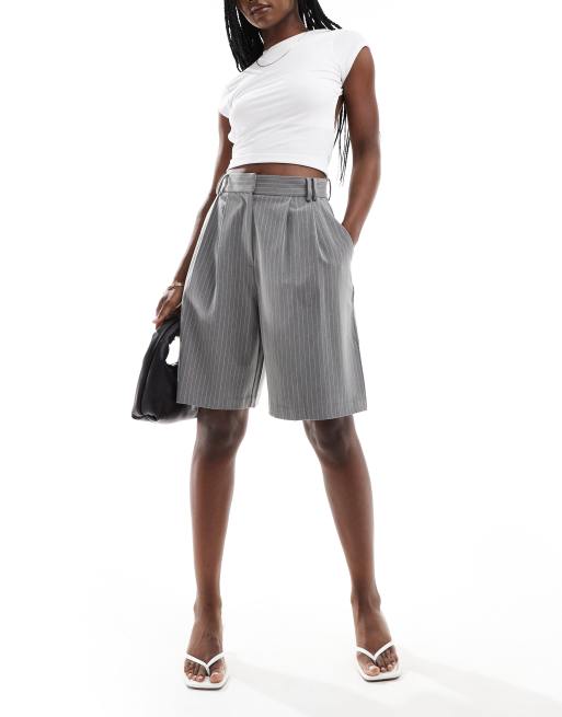 ASOS DESIGN – Dopasowane szare szorty w paski o wydłużonym fasonie