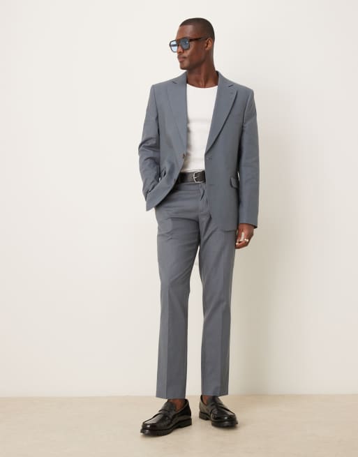 ASOS DESIGN – Dopasowany niebieski garnitur z mieszanki lnu