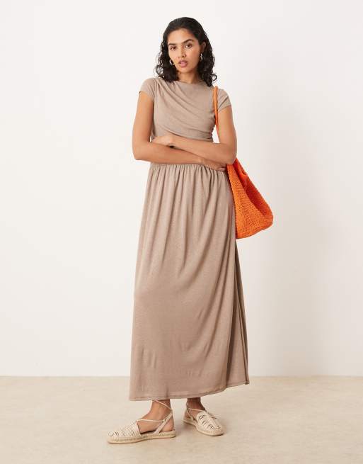 ASOS DESIGN – Drapowana sukienka T-shirtowa maxi z obniżonym stanem w kolorze beżowym