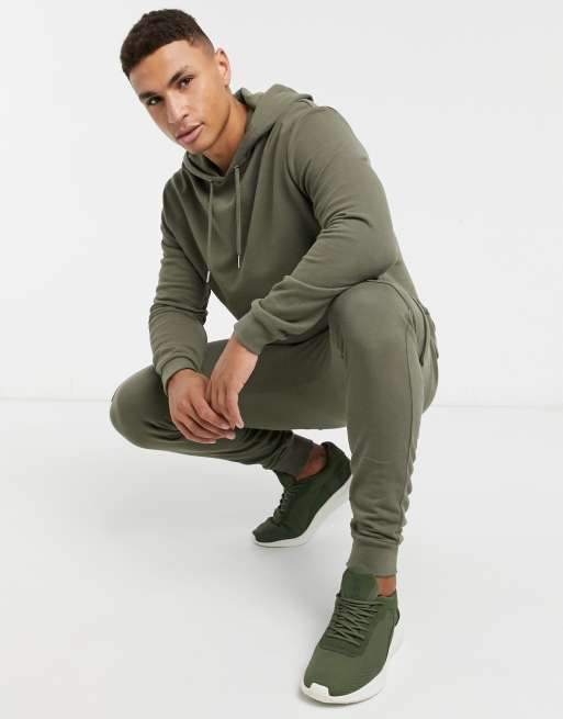 ASOS DESIGN – Dres z bluzą z kapturem i obcisłymi joggersami bojówkami w kolorze khaki