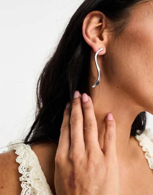 ASOS DESIGN – Długie falowane kolczyki w kolorze srebra