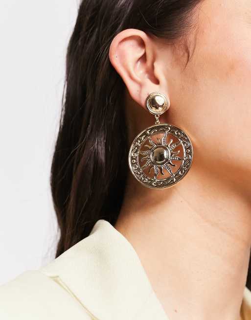 ASOS DESIGN – Długie kolczyki w kształcie dysku ze słońcem w odcieniu złota