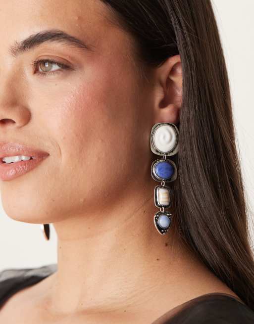 ASOS DESIGN – Długie kolczyki w odcieniu srebra z naturalnymi kamieniami półszlachetnymi