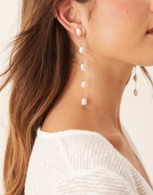 ASOS DESIGN – Długie kolczyki w odcieniu złota ze sztucznymi perłami