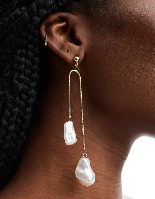 ASOS DESIGN – Długie kolczyki z łańcuszka w odcieniu złota ze sztucznymi perłami
