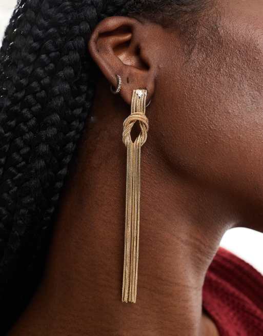 ASOS DESIGN – Długie kolczyki z węzłem i frędzlami w kolorze złota