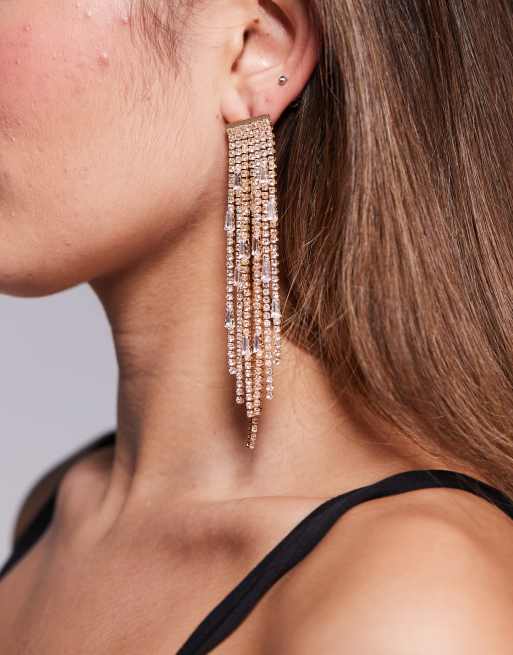 ASOS DESIGN – Długie wiszące kolczyki w kolorze złota z cyrkoniami