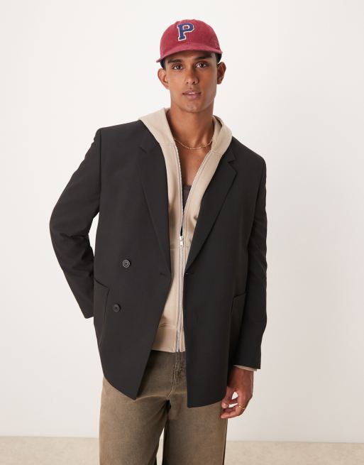 ASOS DESIGN – Dwurzędowa czarna marynarka garniturowa o bardzo luźnym pudełkowym kroju