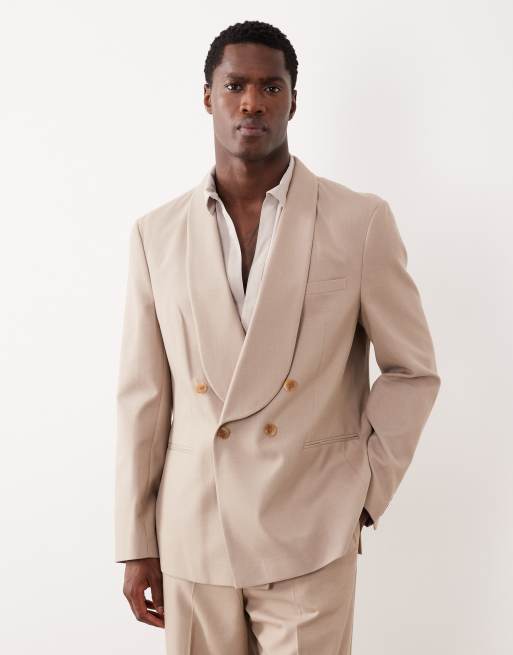 ASOS DESIGN – Dwurzędowa flanelowa marynarka garniturowa o regularnym kroju w kolorze beżowym
