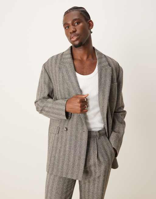 ASOS DESIGN – Dwurzędowa grafitowa marynarka garniturowa o bardzo luźnym kroju we wzór w jodełkę