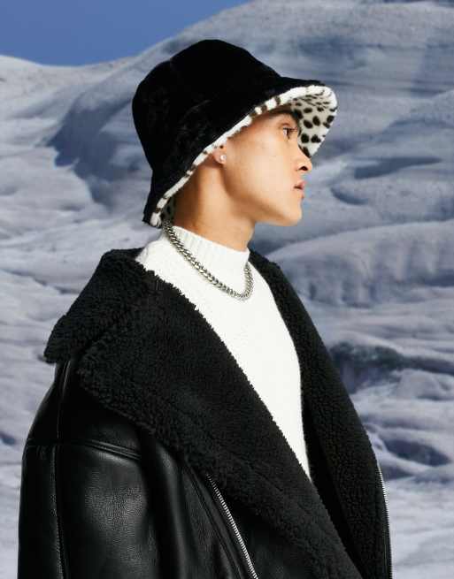 ASOS DESIGN – Dwustronny kapelusz typu bucket z imitacji futra z nadrukiem w stylu Y2K w łatki dalmatyńczyków