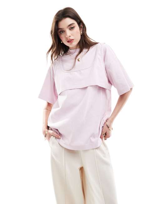 ASOS DESIGN – Dwuwarstwowy T-shirt oversize z krótkim topem na zewnątrz w kolorze spranego różu