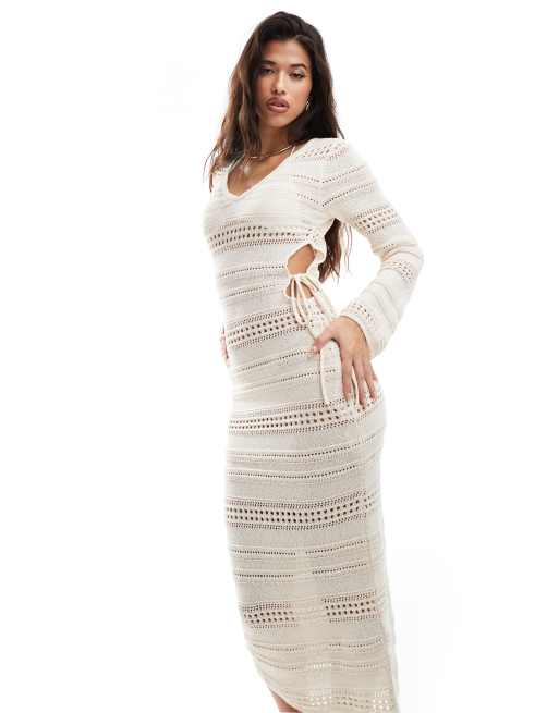 ASOS DESIGN – Dzianinowa sukienka midaxi z ażurowym wzorem i wycięciami