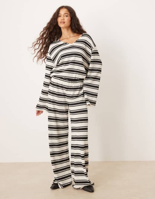 ASOS DESIGN – Dzianinowe spodnie z szerokimi nogawkami w czarno-białe paski, część zestawu