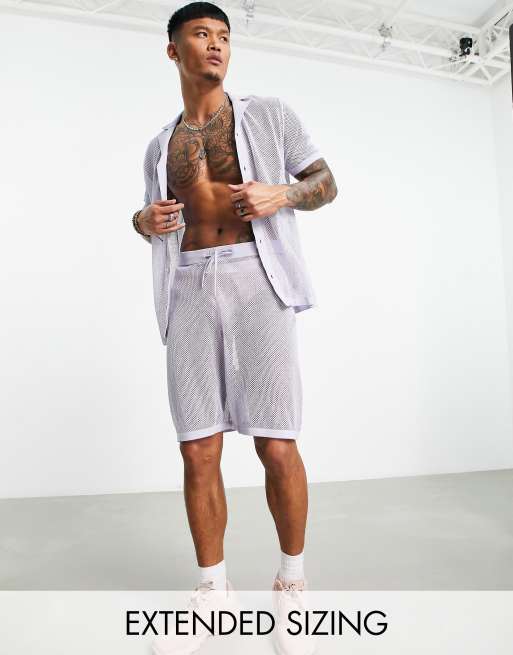 ASOS DESIGN – Dzianinowe szorty z siateczki w liliowym kolorze, część zestawu