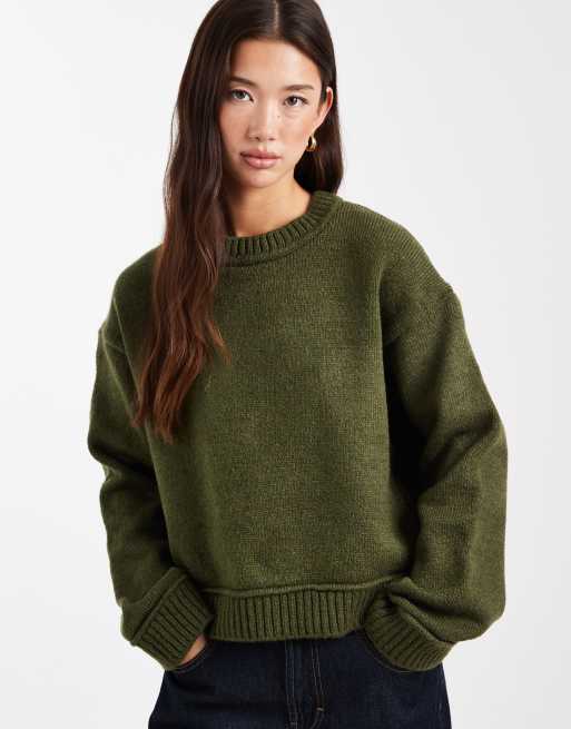 ASOS DESIGN – Dzianinowy sweter w kolorze khaki z wykończeniem szerokimi prążkami