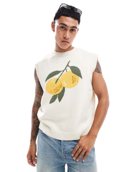 ASOS DESIGN – Dzianinowy top bez rękawów w kolorze ecru z motywem owoców
