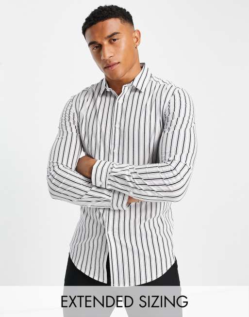 ASOS DESIGN – Elegancka dopasowana koszula w biało-granatowe paski