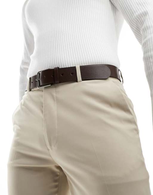ASOS DESIGN – Elegancki brązowy pasek ze skóry