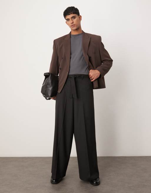 ASOS DESIGN – Eleganckie bardzo szerokie spodnie z paskiem w czarnym kolorze